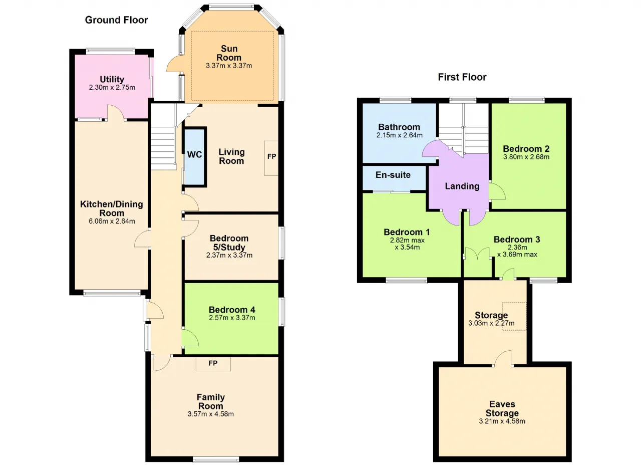 Upstairs there are three bedrooms (1 ensuite) and a family bathroom. Extra attic storage with velux window and eaves storage accessible from bedroom two.
