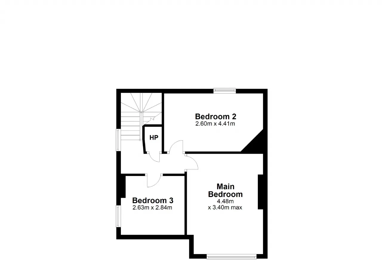 Bedroom 3 2.63m x 2.84m Double bedroom to the rear with Victorian cast iron fireplace and nice sea view from the window