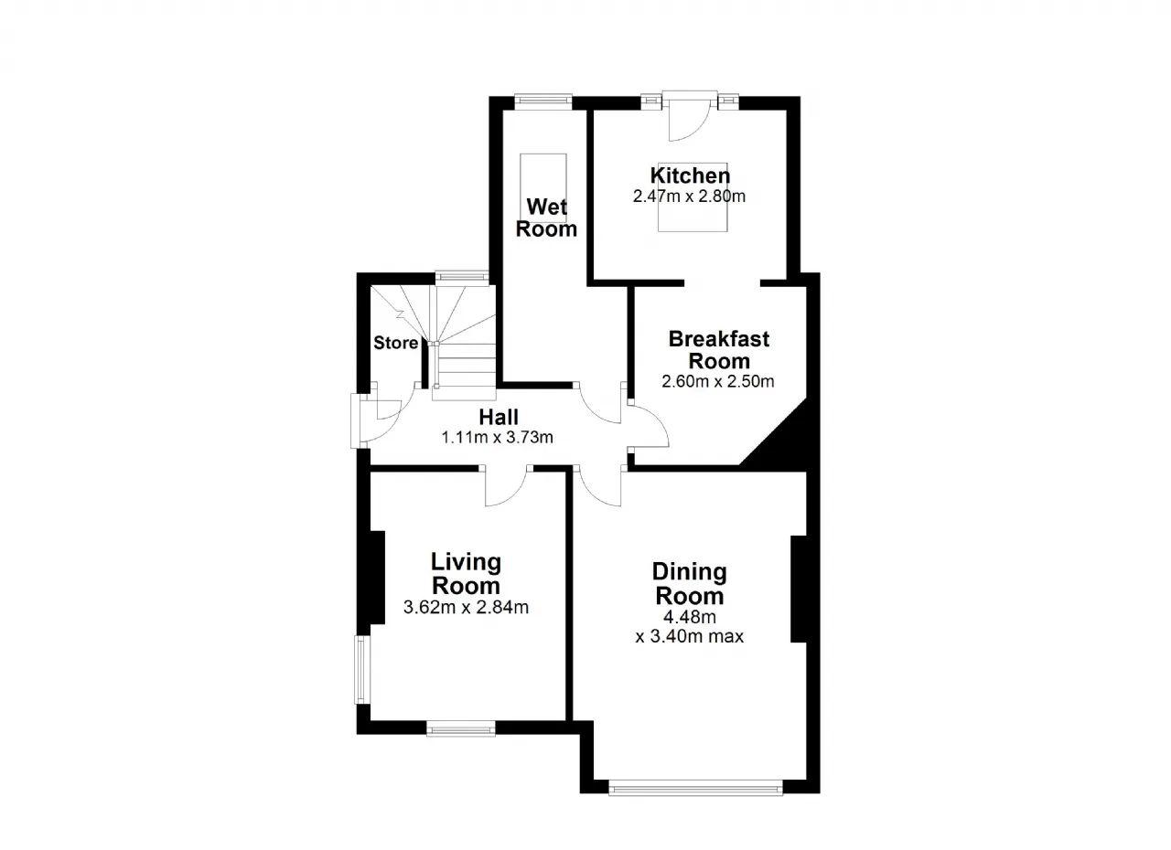 Dining Room 4.48m x 3.40m With cast iron Victorian fireplace, three sash windows overlooking the front garden