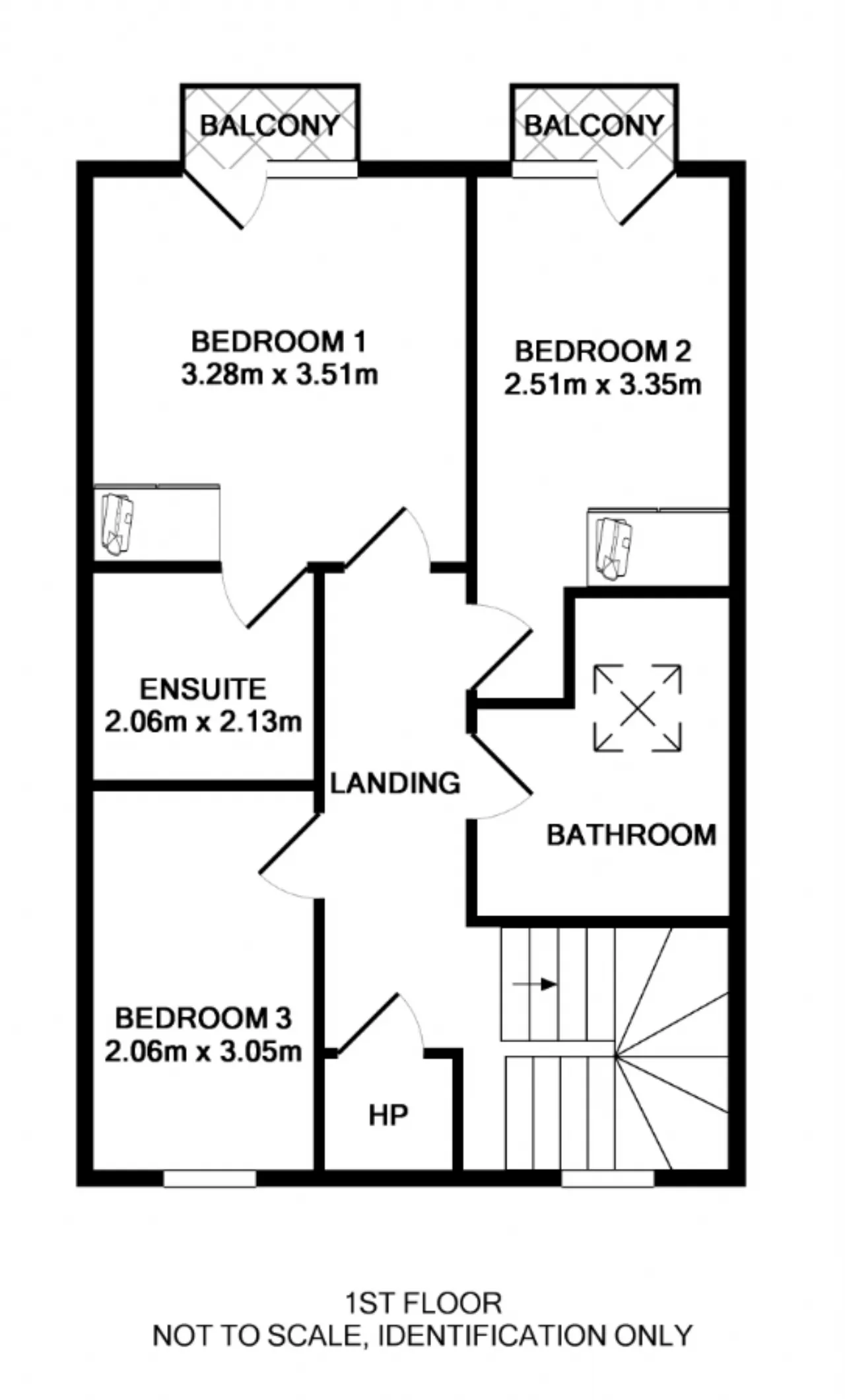 Bedroom 1 3.28m x 3.51m (Main): with built in wardrobes. Viewing balcony looking out on to the rear garden