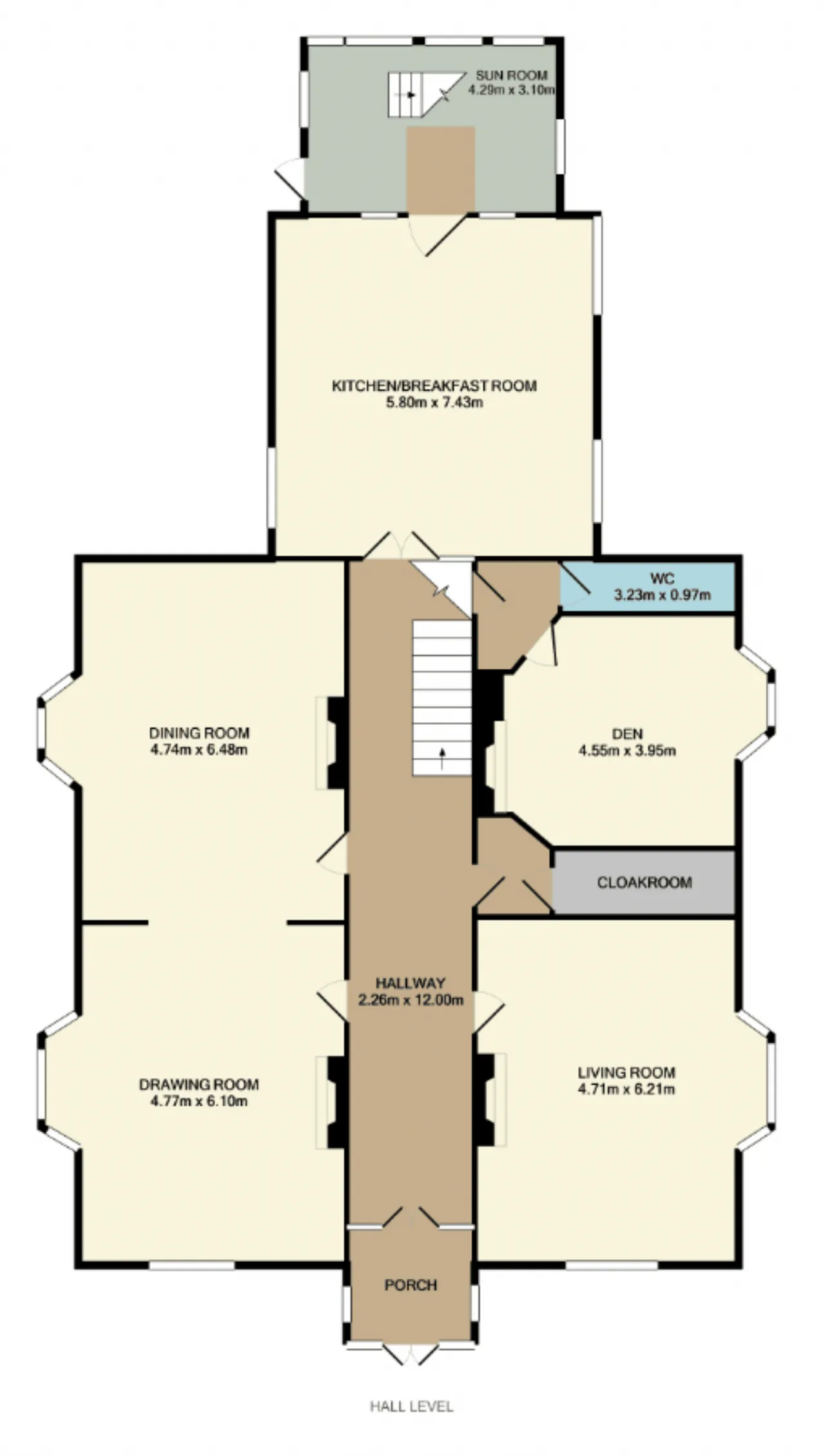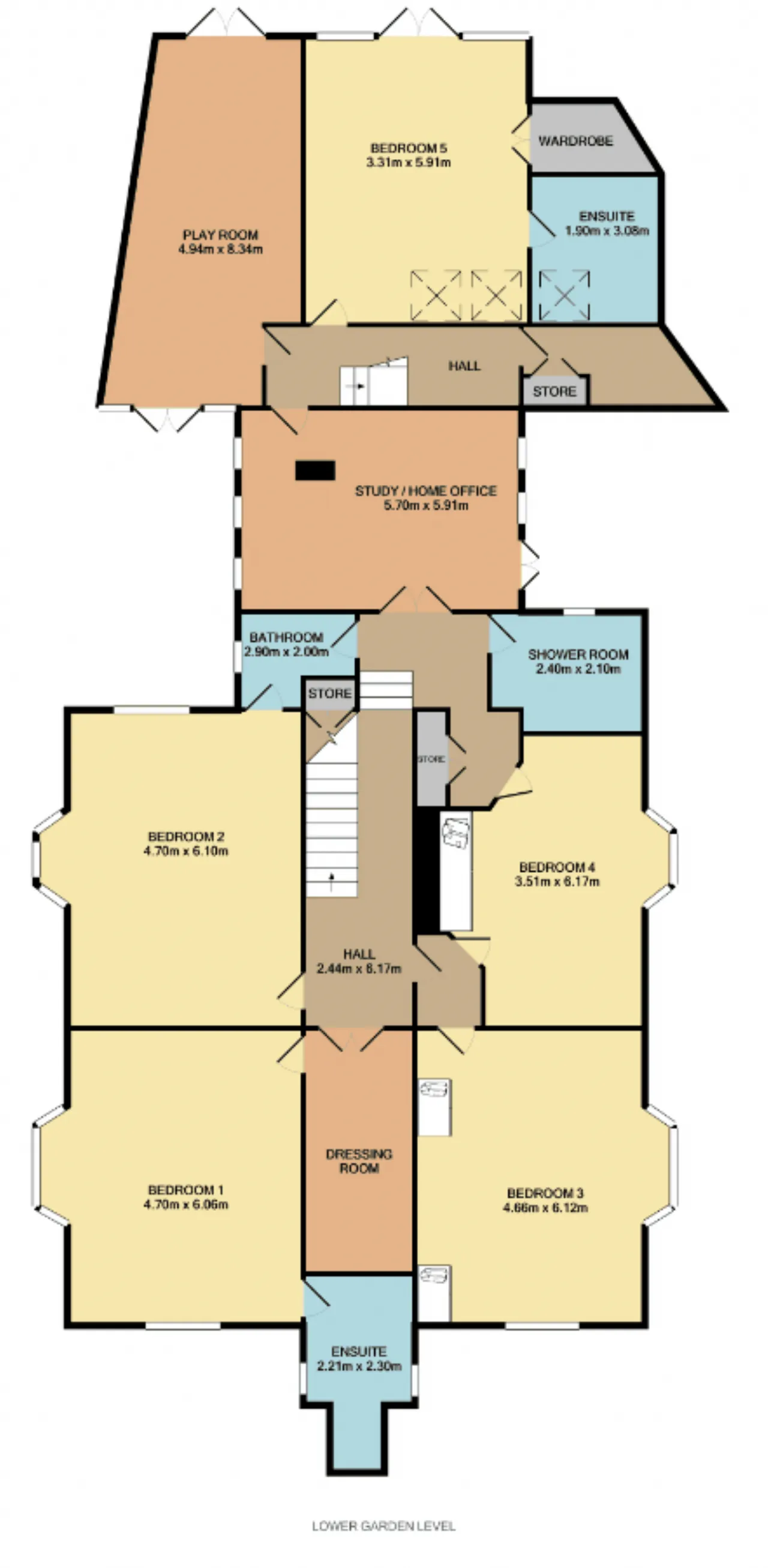 This double fronted two storey home with wide bay windows to the east and west sides at both levels, has been built and orientated to ensure that light floods through it. The approximately 5,600 square feet of accommodation is laid out symmetrically and provides a perfect balance between living and bedroom accommodation. The entrance hall with its circular light dome provides the access point for the principal rooms. The interconnecting reception rooms have a dual aspect and display beautifully intact period detail including joinery, cornice work, fireplaces and the original inlaid parquet floor. These rooms also provide beautiful views of the gardens south and west. The kitchen on this level deserves special mention with its high standard of finish and unique triple aspect. The distinctive staircase which splits in a north and south direction as it leads to the lower level, is also a further attractive feature.