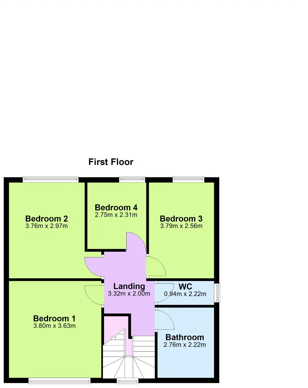 Bedroom 3 3.79m x 2.56m With window overlooking the rear