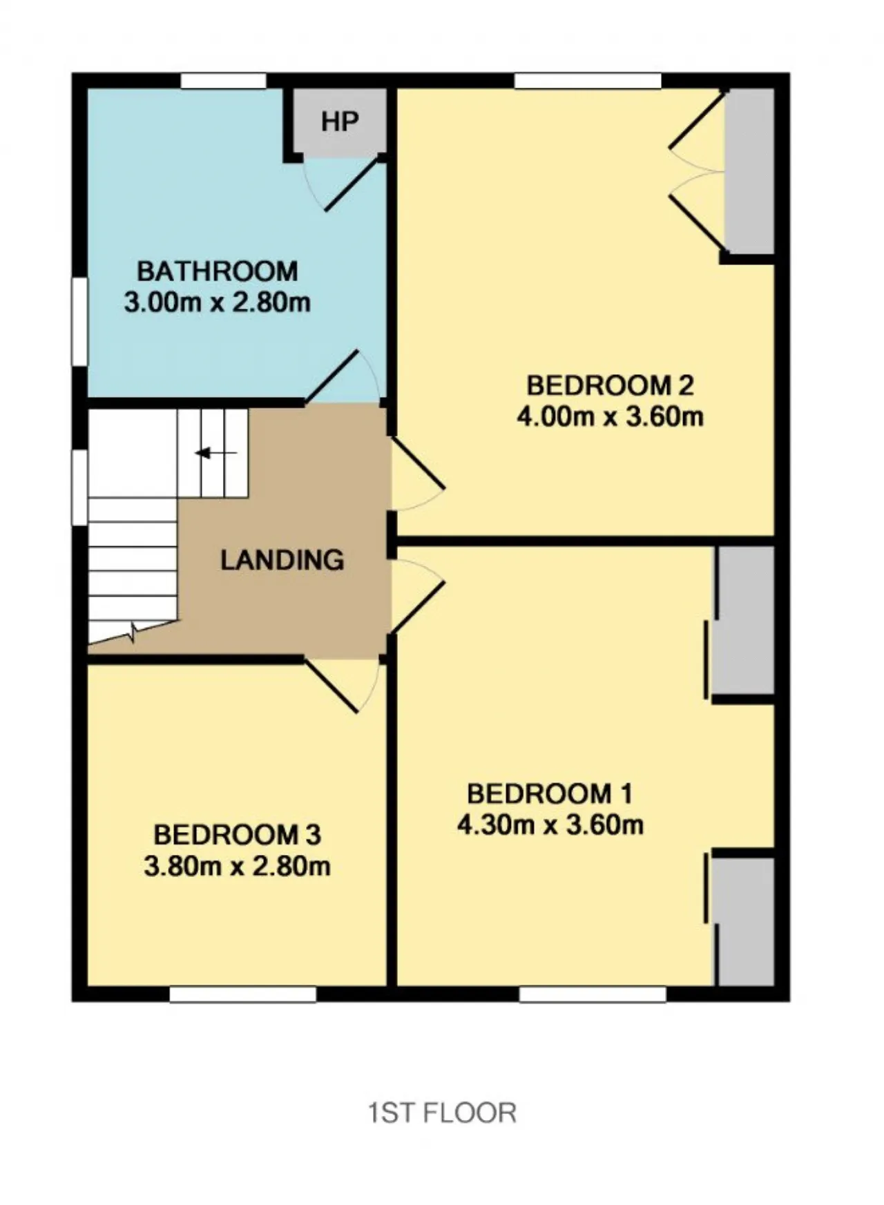 Bedroom 1 4.30m x 3.60m Double bedroom to the front with carpet floor and fitted wardrobes.