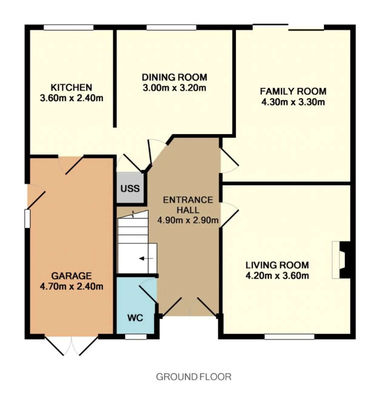 Flooded with natural light, it is ideally laid out for modern day living and offers excellent scope to extend or convert the garage (subject to planning) should one require additional space. The ground floor comprises; welcoming entrance hall off which lies a guest w.c with a porthole window, living room with a feature fireplace, family room with French doors leading out to the garden and patio, and a kitchen/dining room offering a range of integrated appliances. Adding to the character of the home are the original hall and internal doors.