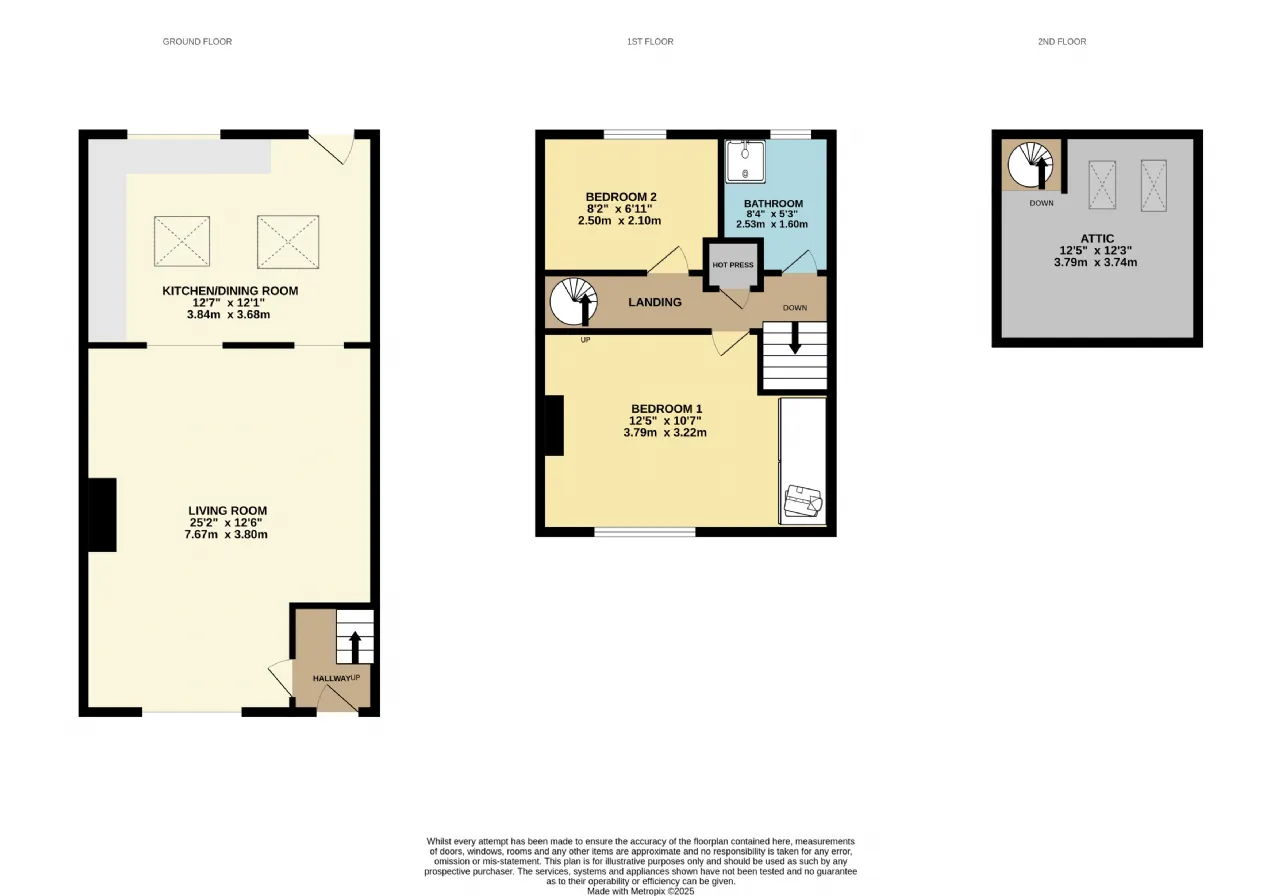 The accommodation briefly comprises of an entrance hallway with stairs to the first-floor landing leading into a spacious living room that opens seamlessly into the extended kitchen/dining area. Upstairs there are two bedrooms, a generous double and comfortable single with a spiral staircase leading to the converted attic. A large family bathroom completes the accommodation.