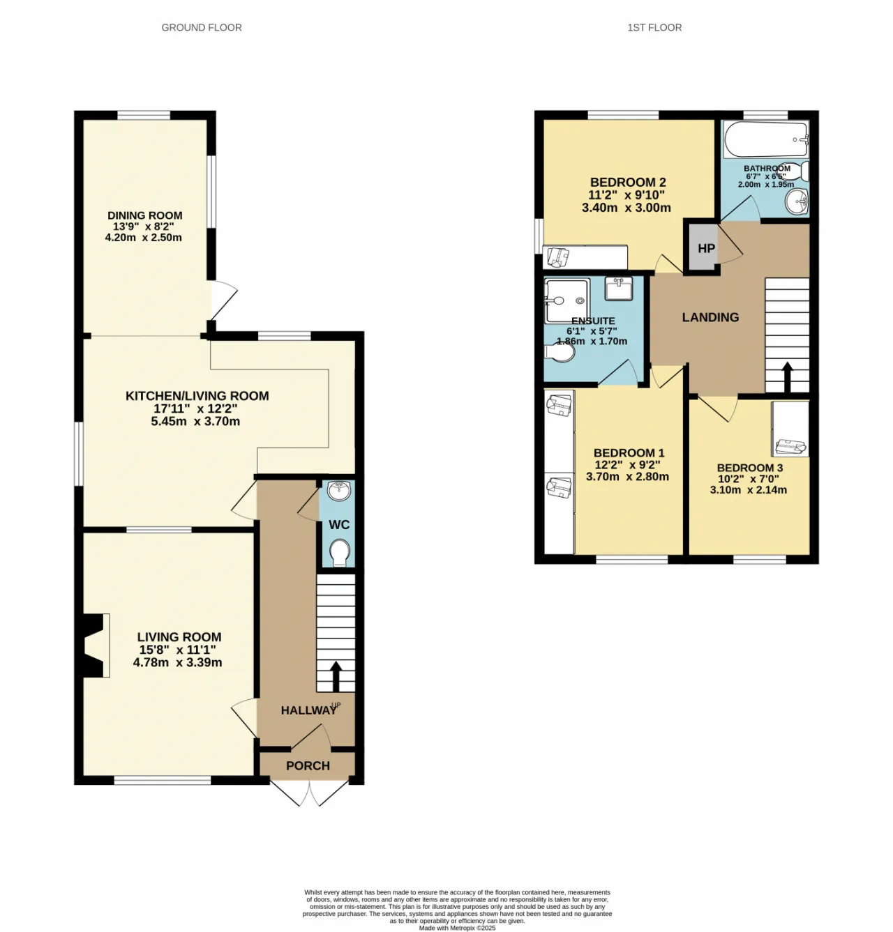 The ground floor features a bright and welcoming living room with a stone coal fireplace, a fully tiled downstairs bathroom, and a spacious open-plan kitchen/dining area that has been extended and opens up to the garden, ideal for family living and entertaining.