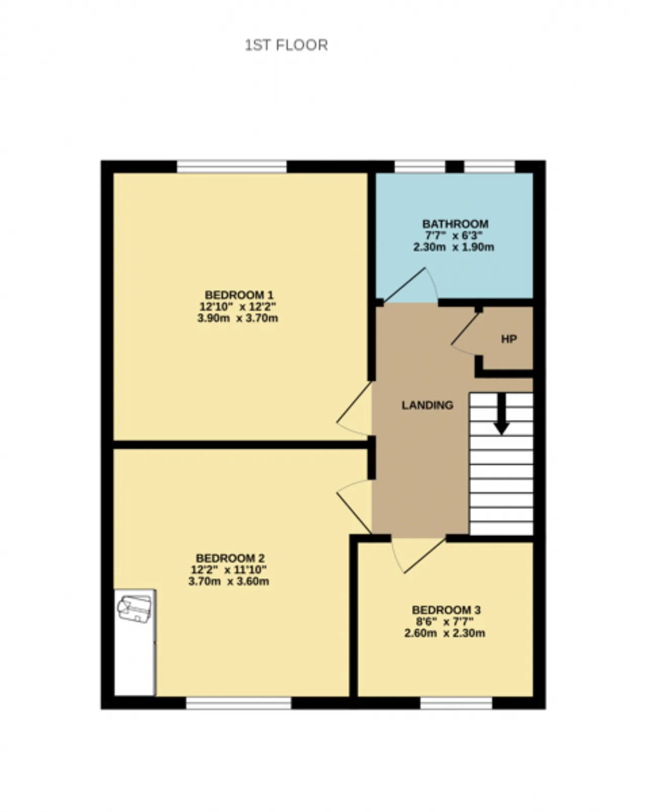 Bedroom 3 2.30m x 2.60m A single bedroom with carpeted floors, offering a comfortable and practical space.