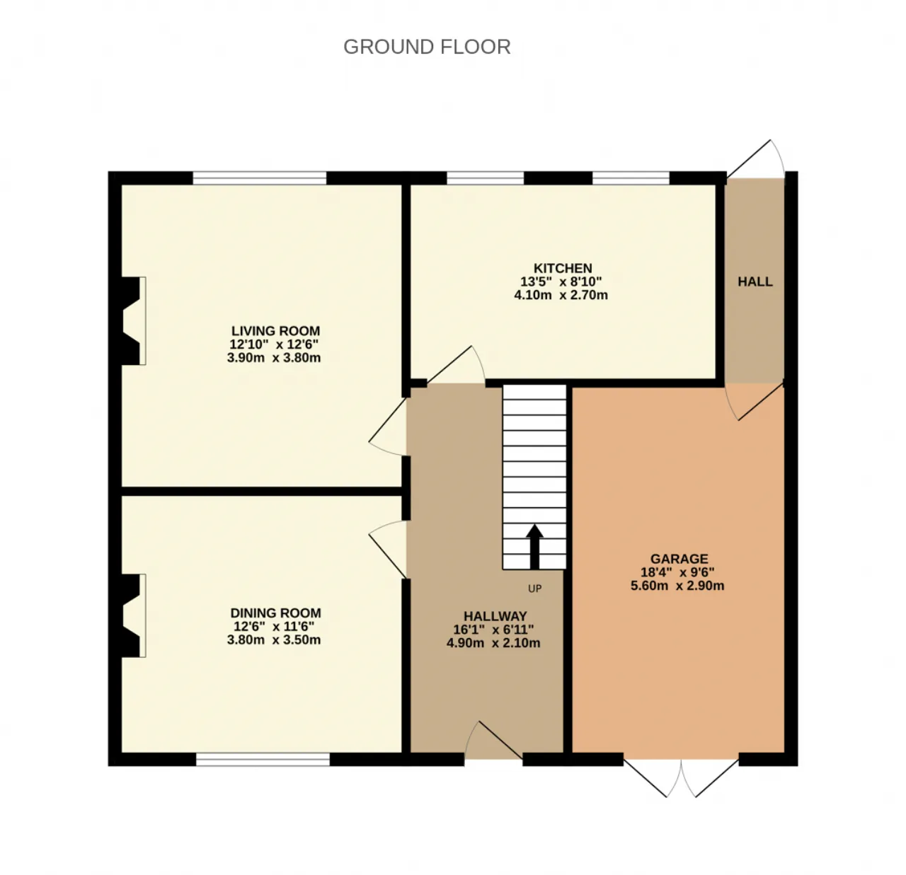 Inner Hallway 2.80m x 0.90m A practical tiled space linking the garage to the kitchen and providing access to the back garden. This area serves as a convenient transitional space, offering easy movement between the garage, kitchen and outdoor area.