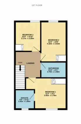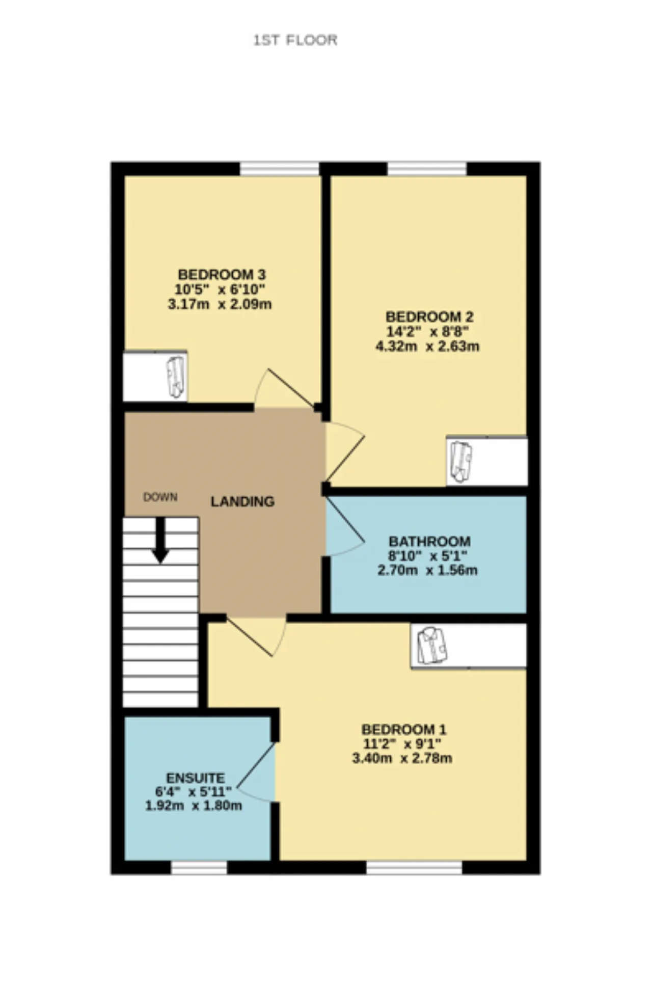 Bedroom 1 3.40m x 2.78m Located to the front of the property is this spacious double complete with laminate flooring, built-in wardrobe and an ensuite.