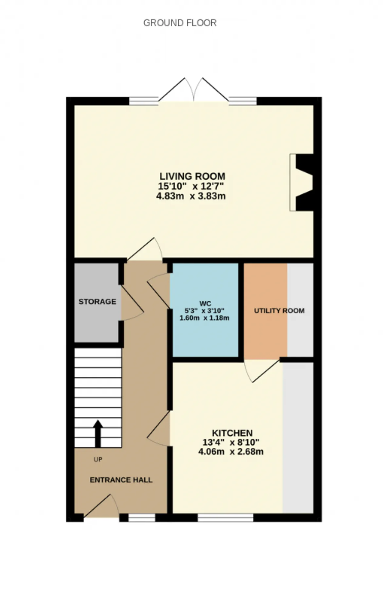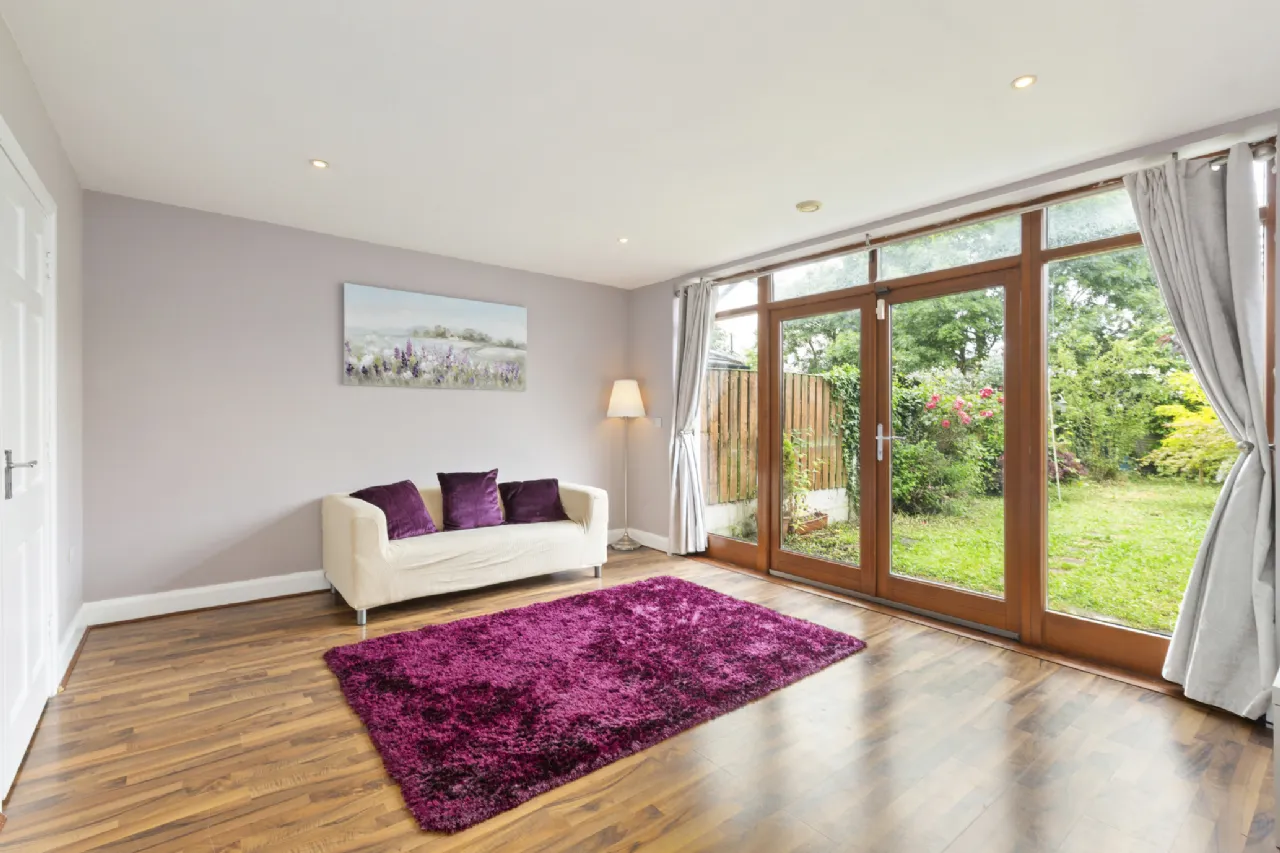 Living Room 4.83m x 3.83m Located to the rear and spanning the full width of the property is this very spacious and light-filled living area complete with a featured fireplace, laminate flooring, floor to ceiling windows and double doors leading on to the west-facing garden.