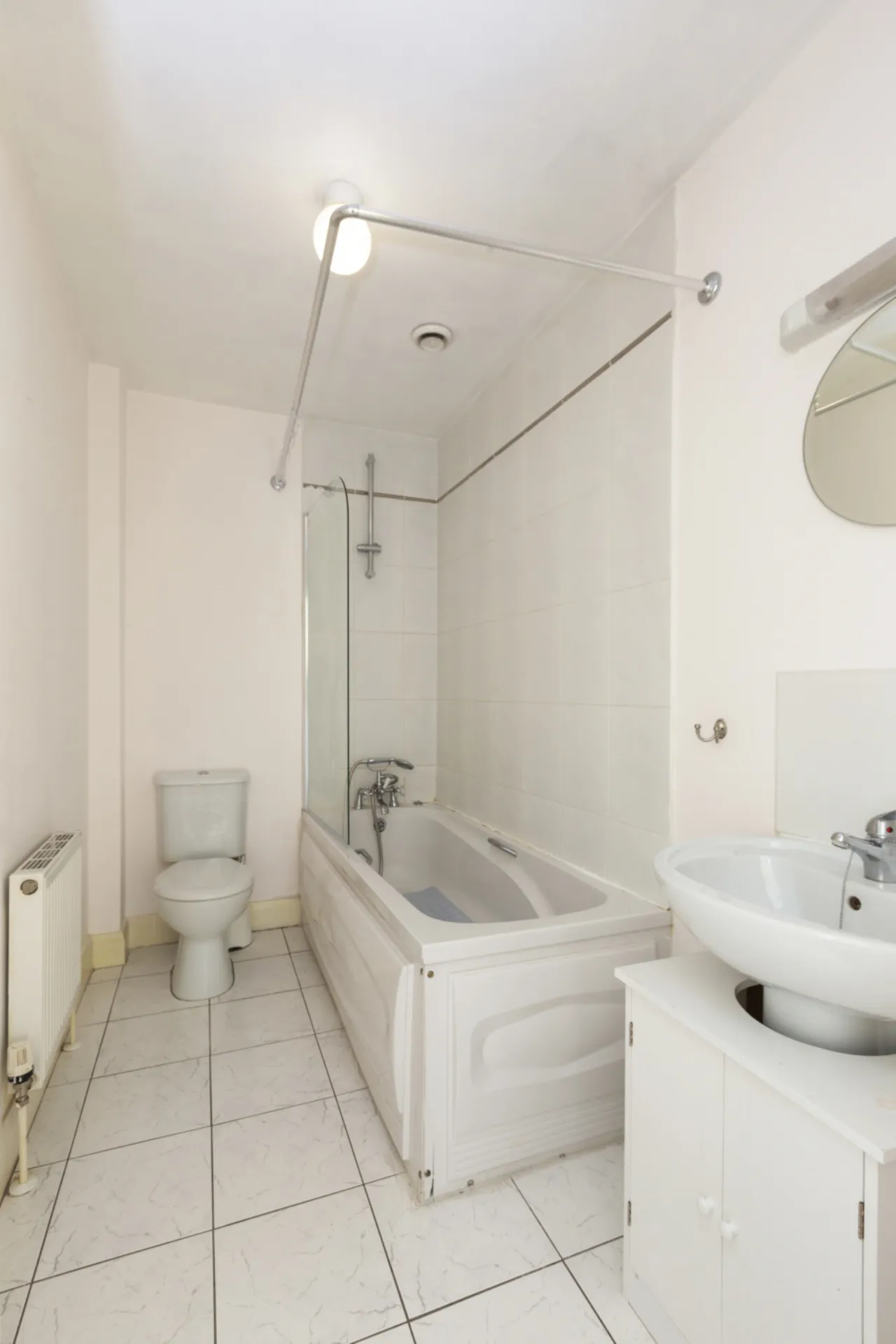 Bathroom 2.70m x 1.56m Spacious family bathroom with tiled flooring, WC, WHB and bathtub with pump showerhead.