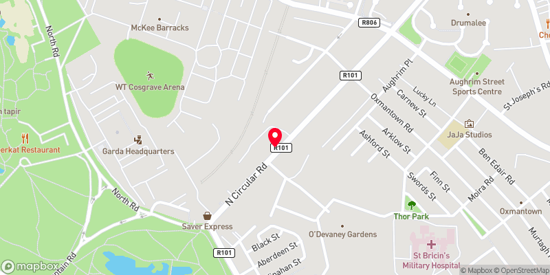 The North Circular Road is an important thoroughfare on the northside of Dublin. The regional road was long considered the northern boundary of the city and still separates the city centre from the inner suburbs. It runs from the Phoenix Park in the west through Phibsboro, to North Wall in the east and is the location of a number of important institutions, The Mater Hospital, Dalymount Park and Mountjoy Prison are on the North Circular Road and both Croke Park and St. Brendan's Hospital are nearby.