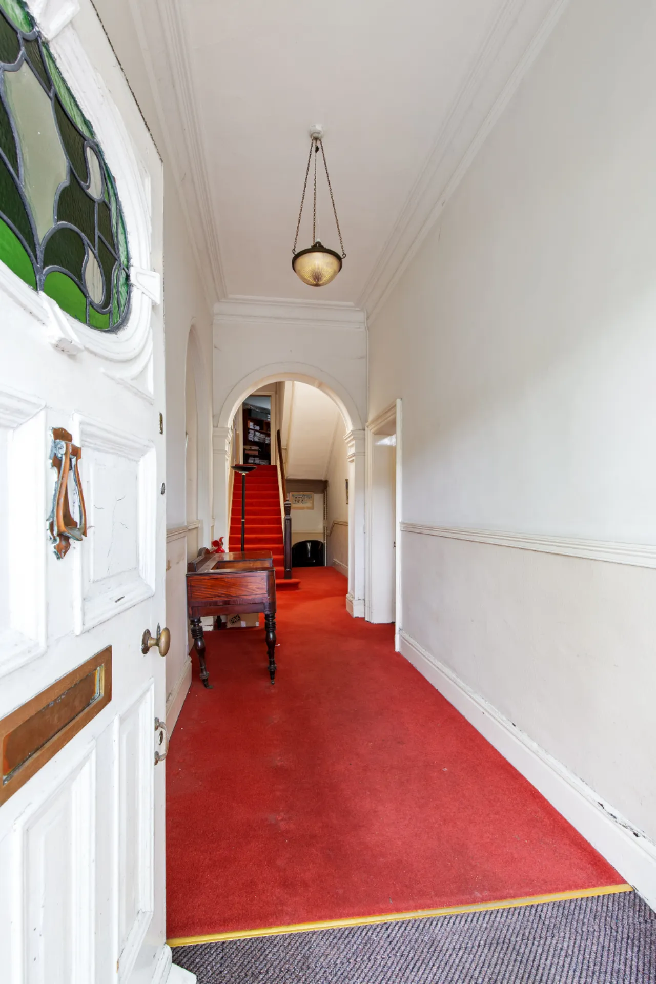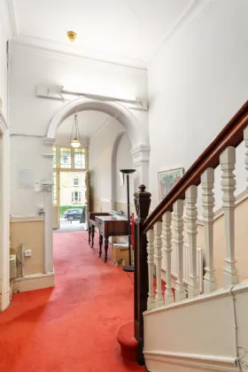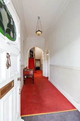 Entrance Hallway 11.7m x 2.2m The entrance hallway sets the tone for the sheer scale and grandeur of the property with a high ceiling giving a great sense of space. Features include the original stained glass hall door insets, dado rails, covings and arch.