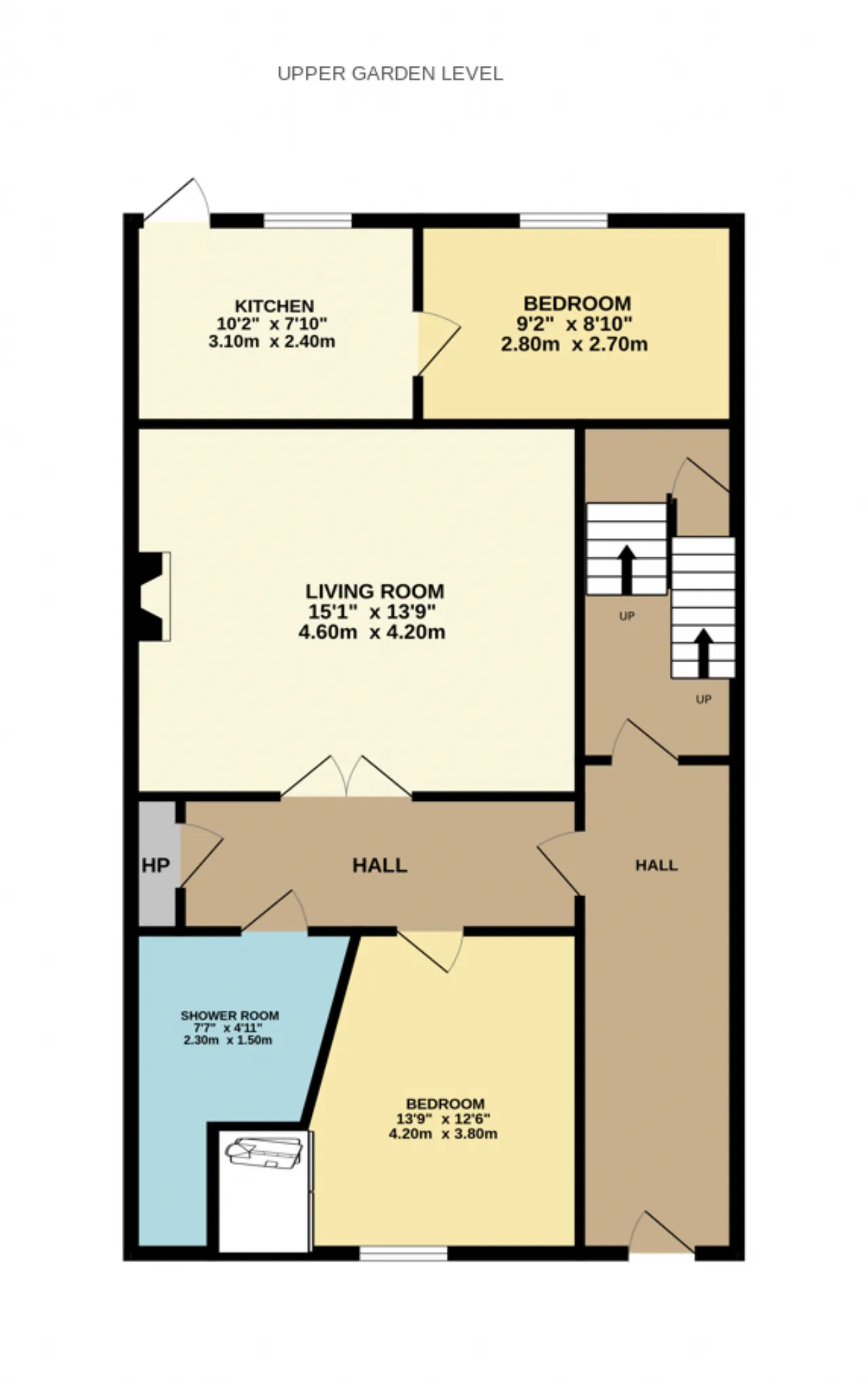 Office 2.60m x 3.60m Could be used for a variety of purposes with carpet flooring, feature fireplace and steps to an inner hallway and garden access.