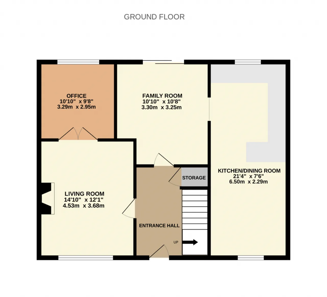 Home Office 3.29m x 2.95m Located to the rear of the property, a versatile room that can incorporate a multitude of uses. With laminate flooring, ceiling coving.