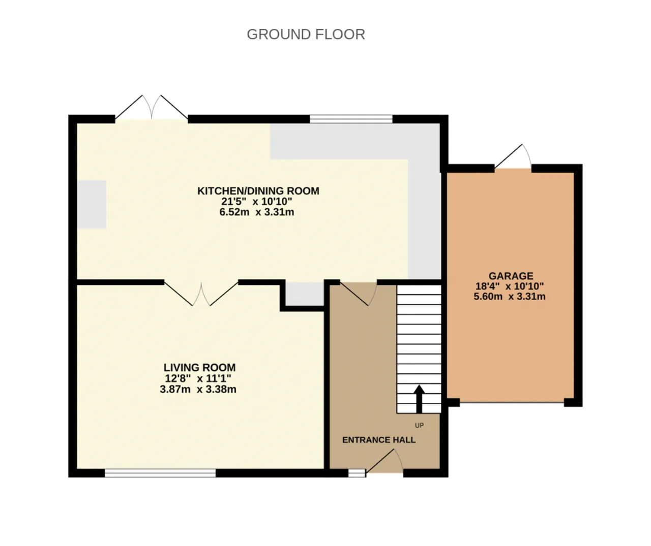 Kitchen Dining Room 6.52m x 3.31m An open plan space that spans the width of the property with tile flooring, recessed lighting and double doors leading to the rear garden. The kitchen comes complete with ample wall and floor storage units, a wealth of counter top space with tile splashback, single oven, gas hob with overhead extractor fan.