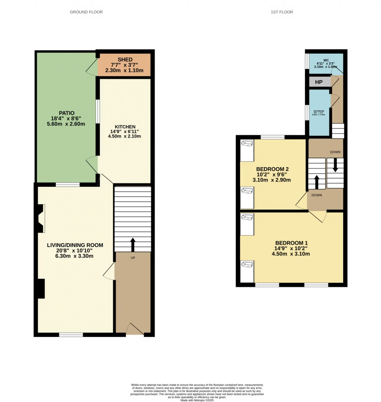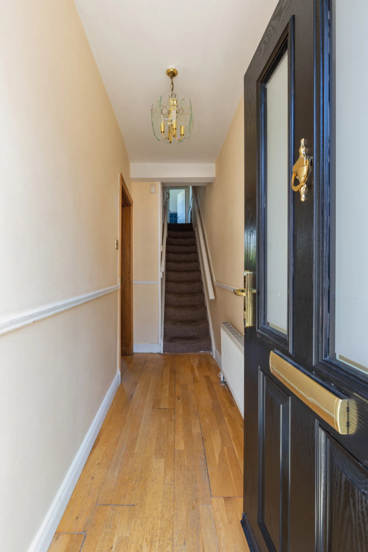The accommodation comprises an entrance hallway which leads through to a spacious open plan living and dining room, ideal for both everyday living and entertaining. Just off this lies the kitchen, which opens directly onto a private patio garden with useful storage shed to the rear. Upstairs, on the return, there is a well appointed bathroom and a separate WC. Continuing to the first floor, there are two generous double bedrooms, while attic access is available from the landing.