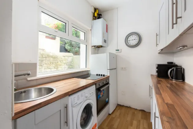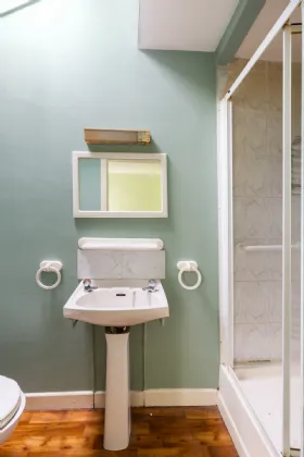 Bedroom 1 3.48m x 3.03m A generous double bedroom located at the front of the property, overlooking King’s Inns Park. Features include built-in wardrobes, a hot press, and attic access.