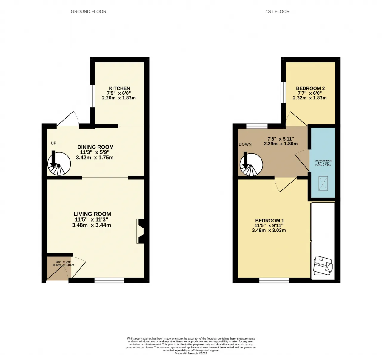 The accommodation comprises an entrance hall leading to the front living room, which opens into the dining room. Adjacent to the dining area is the kitchen. Upstairs, there are two bedrooms and a shower room. To the rear, a courtyard features a pedestrian gate providing direct access to Dominick Street Upper.