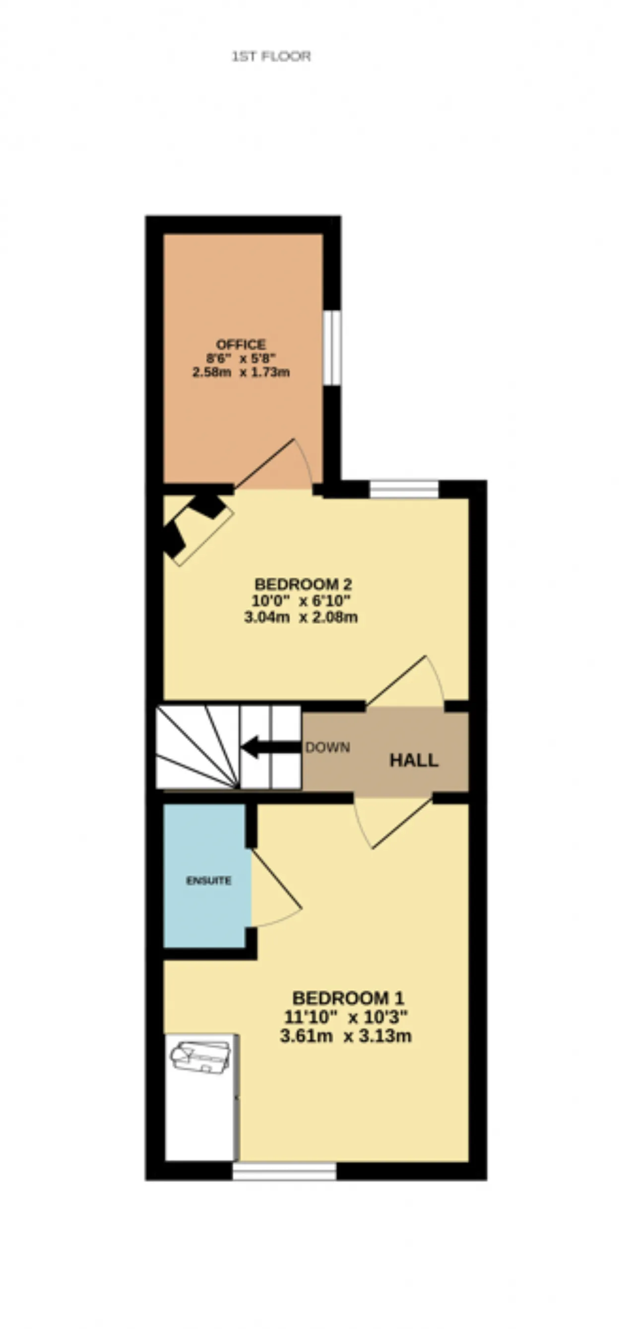 Office 2.58m x 1.73m A bright and practical workspace, the home office is finished with stylish herringbone flooring and fitted with double-glazed windows, ensuring a quiet and comfortable environment.