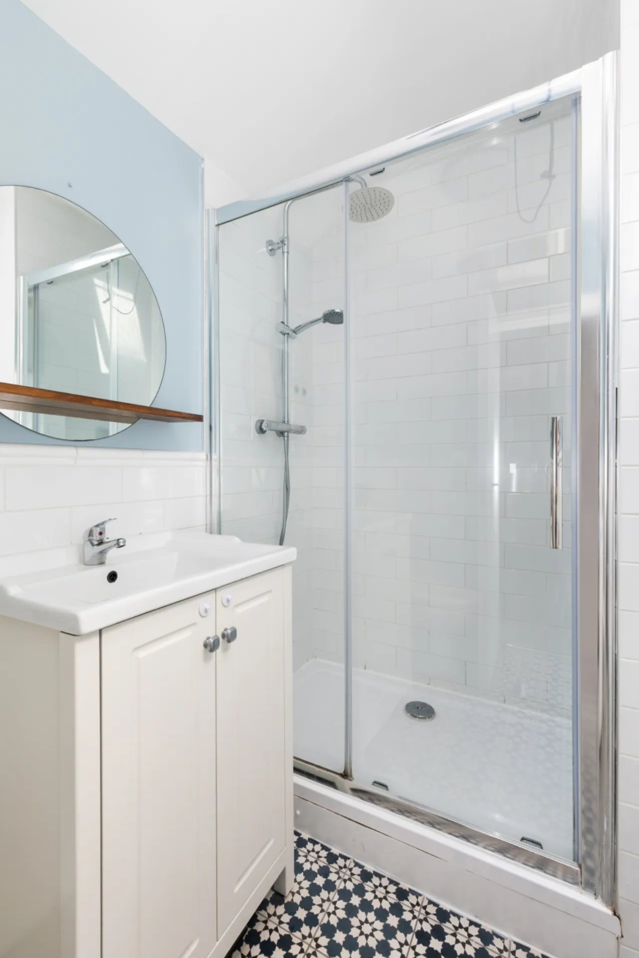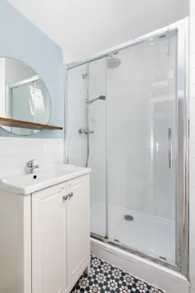 Shower Room 2.78m x 1.41m With wc, vanity whb, rainwater shower, tiled floor, tiled splashback and heated towel rail