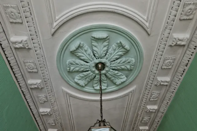 Entrance 6.37m x 1.66m Welcoming hallway with ceiling coving, arch and stain glass window feature above the front door. Access to the rear garden