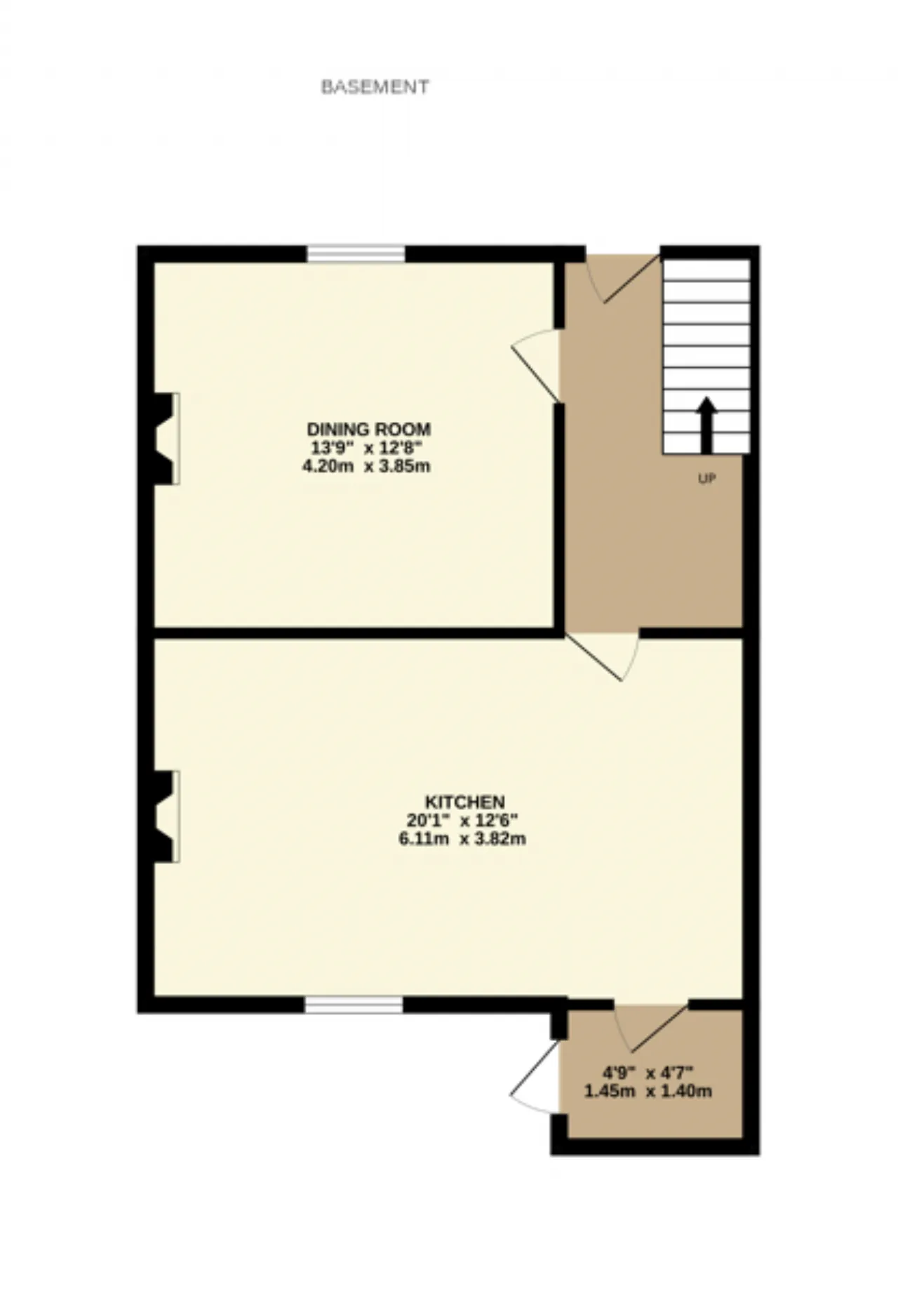 The accommodation comprises entrance hallway, living room, family room/bedroom, lounge and access to the rear garden. In the basement, there is a kitchen and dining room with a door to a coal house/storage area. On the upper floors, there is two double bedrooms (one spanning the width of the property), office and bathroom.
