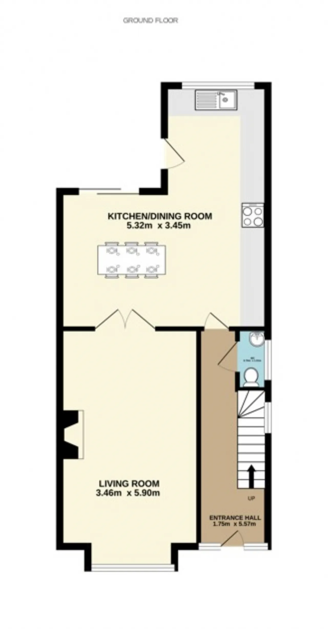 Kitchen Dining Room 5.32 x 3.45 An open-plan kitchen/dining room with tiled flooring and recessed lighting. There is an excellent selection of floor and overhead cabinets with a excellent countertop space. With both sliding doors and single doors leading through to the rear garden.
