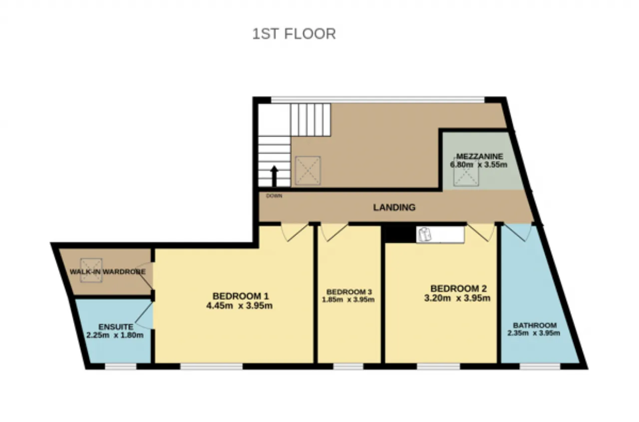Mezzanine 6.8m x 3.55m Timber floor, overlooking living area, great work space.