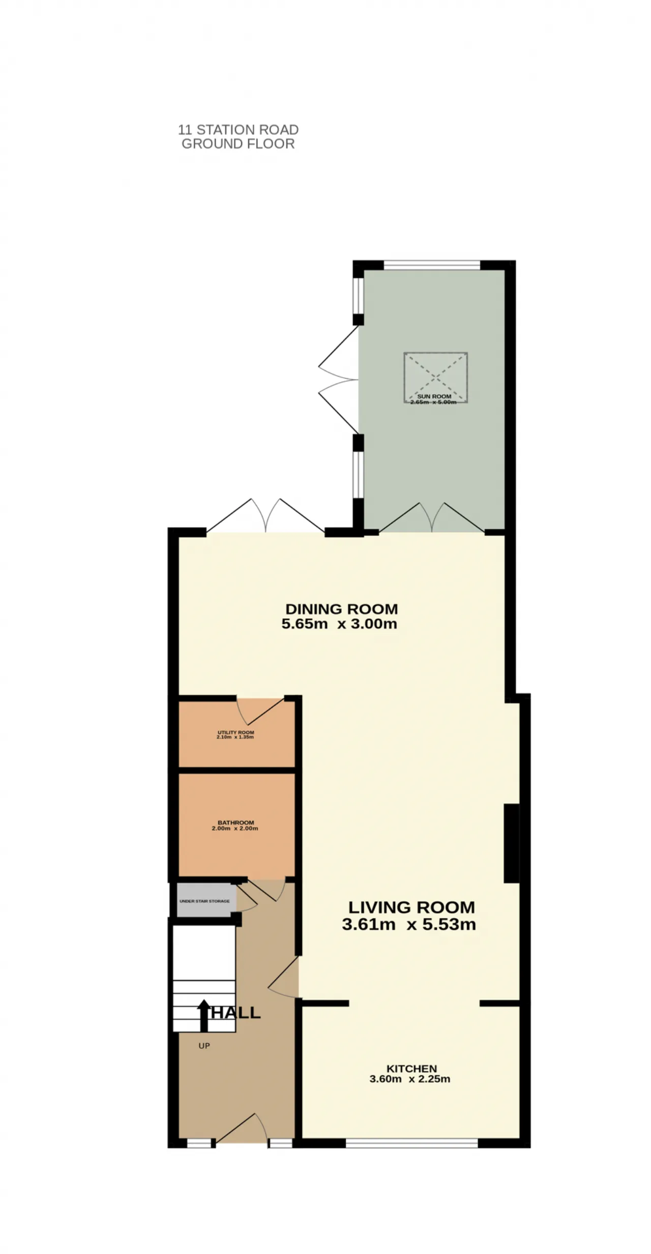 11 Station Road comprises: entrance hall, bathroom, kitchen, open plan living / dining room, utility and sunroom. On the first floor there are 3 bedrooms and ensuite, plus an attic conversion ideal as a home office/study/gym etc. Private South West facing rear garden with two outdoor storage units.