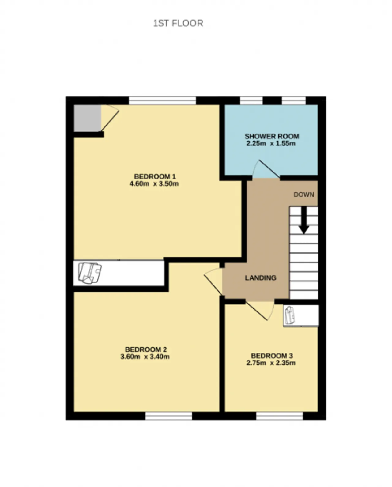 Landing 1.80m x 2.75m Pull down ladder to attic.