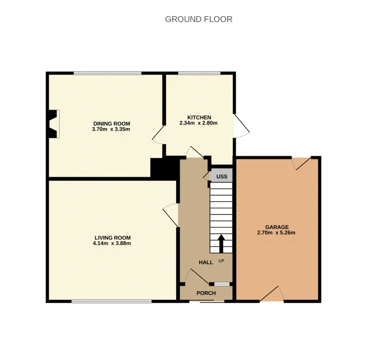 Garage 2.68m x 5.26m Garage attached to home with access front and back, ideal for conversion subject to p.p.
