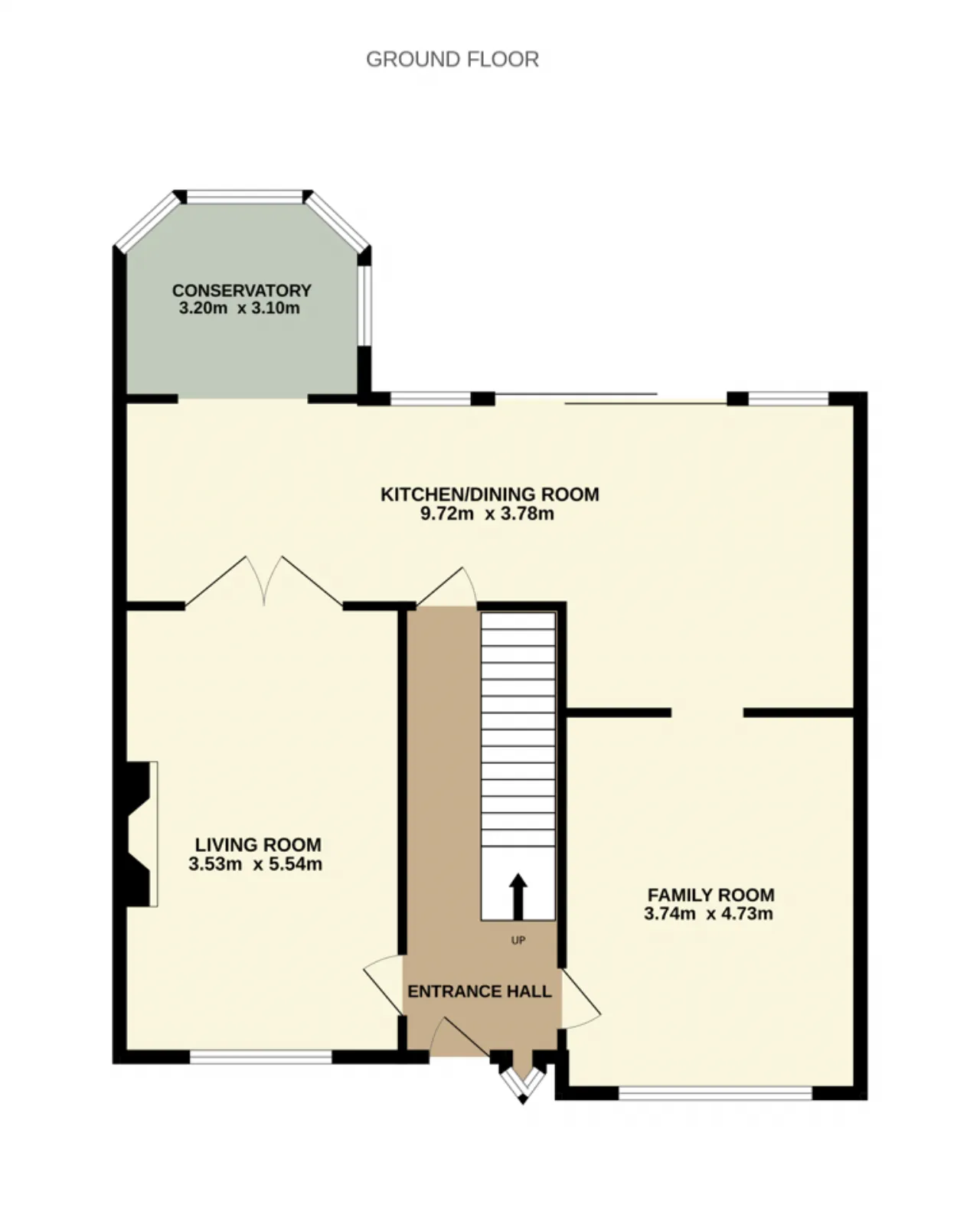 Kitchen/ Dining Room/ Lounge/Sun Room 9.72m x 4.71m This exceptionally large L-shaped open plan family spans the full width of the property. It features quality wood-effect floor tiling, recessed LED ceiling lights and large windows directly overlooking the back garden, which flood the entire space with natural light. It comprises: Kitchen: high-spec fitted kitchen (installed 2019), with sleek contemporary floor and eye-level fitted units, free-standing kitchen island unit with integrated stainless steel sink, extensive engineered stone worktops and splash backs and complete range of integrated modern appliances. Dining Room: Extensive family living space with radiator with bespoke cover, internal doors connecting to the sitting room and larger-than-average double glass doors opening directly out into back garden. Family Room Dual-aspect area with windows overlooking rear garden, Velux roof light windows, built-in window seating, radiator cover and access to rear garden.