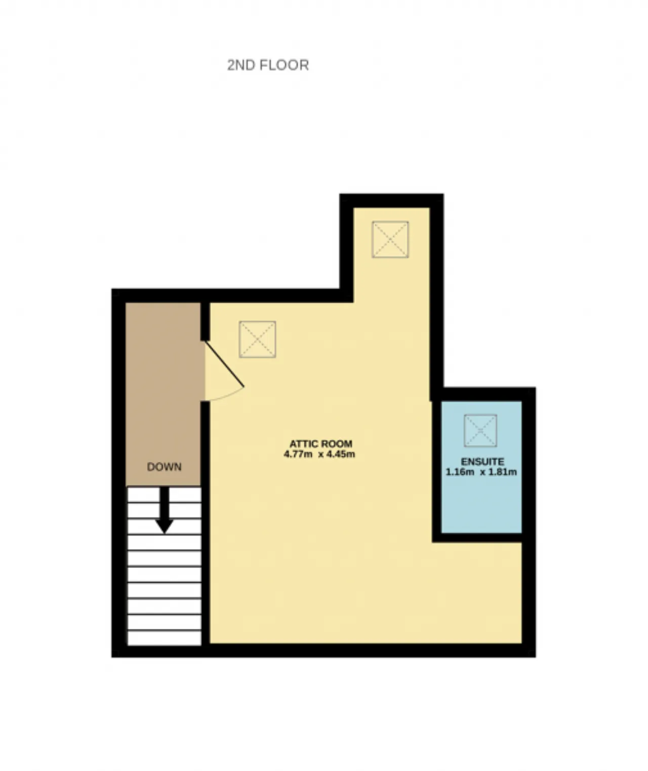 Attic Room 4.77m x 4.45m A bright and versatile space with Velux windows, complete with an ensuite shower room.