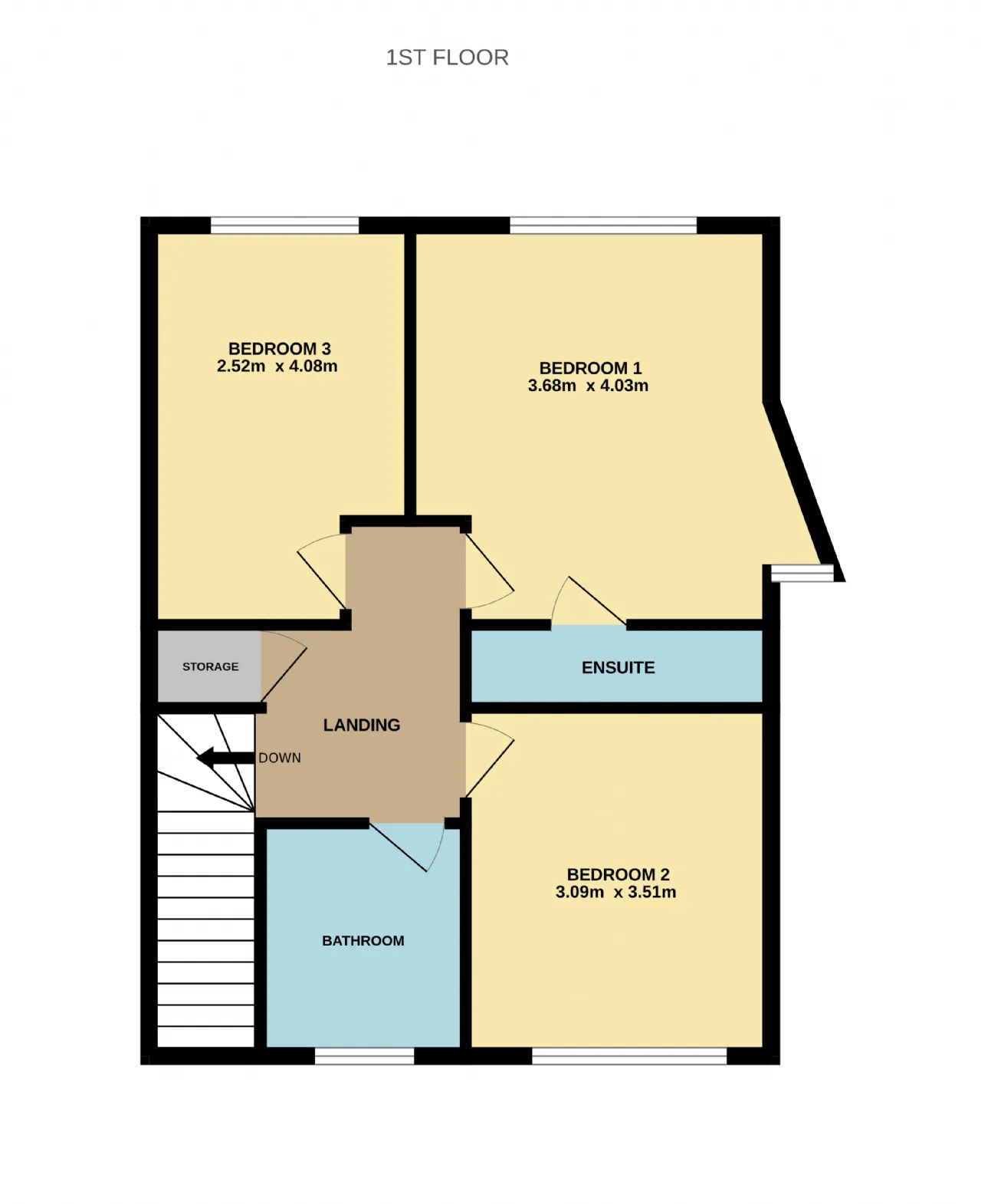 Ensuite 3.09m x 0.84m Fully tiled, WC, wash hand basin, shower cubicle with Mira electric shower.