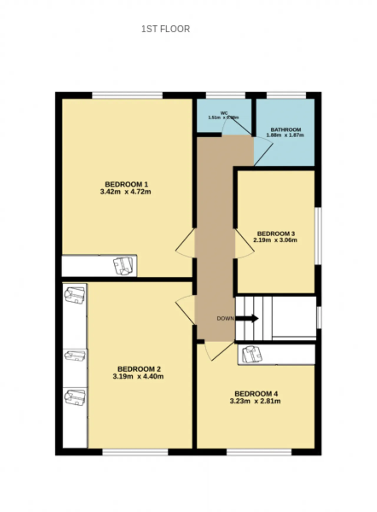 Bedroom 4 3.25m x 2.81m Single bedroom with built in wardrope space