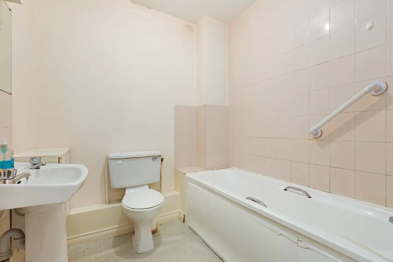 Bathroom 1.96m x 2.00m Partly tiled bathroom, comrpising bath with electric shower, WC and wash hand basin.