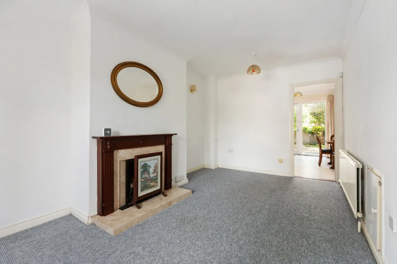 Stepping into the living room, there is a feature fireplace for a main focal point and a door leading to the kitchen/dining room with access to the rear garden. Upstairs, two generous double bedrooms with fitted wardrobes and a well-appointed family bathroom complete the accommodation.