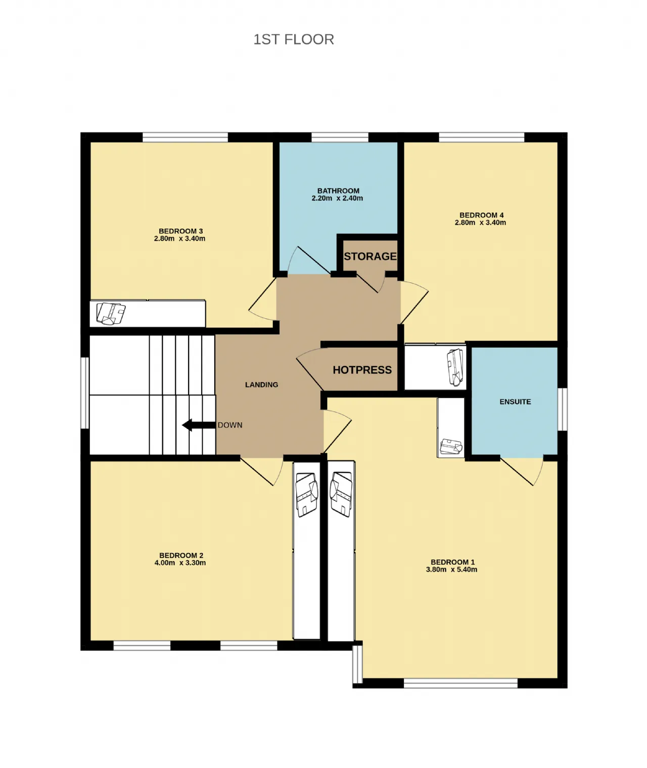 Bedroom 4 2.80m x 3.40m Timber floorboards, fully fitted wardrobes and window to rear.
