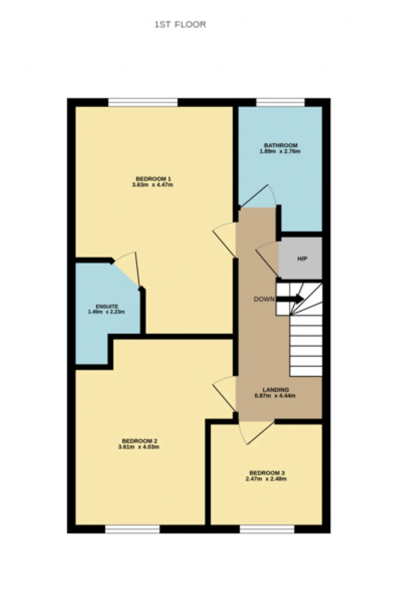 Bedroom Three 2.47m x 2.48m Single bedroom currently in use as home office, fitted wardrobes and window to front.