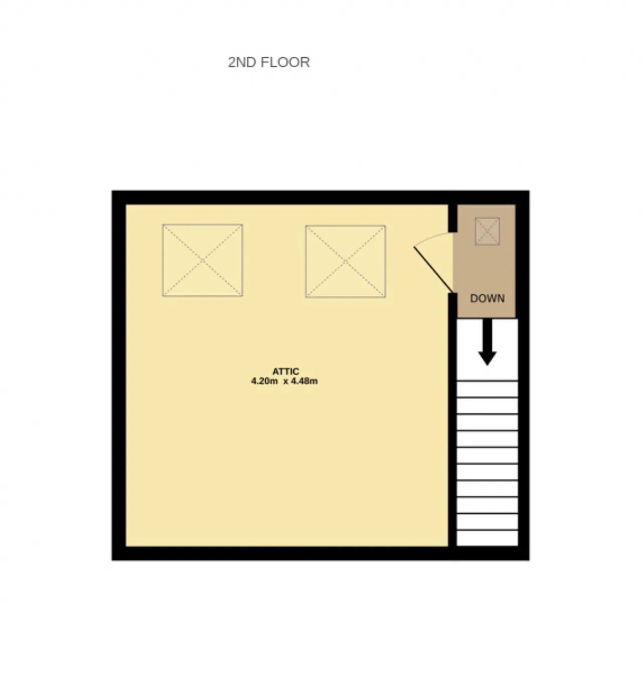 Attic Room Carpet flooring, 2 large velux windows with views of Poolbag Lighthouse, under eaves storage and recesssed lighting.