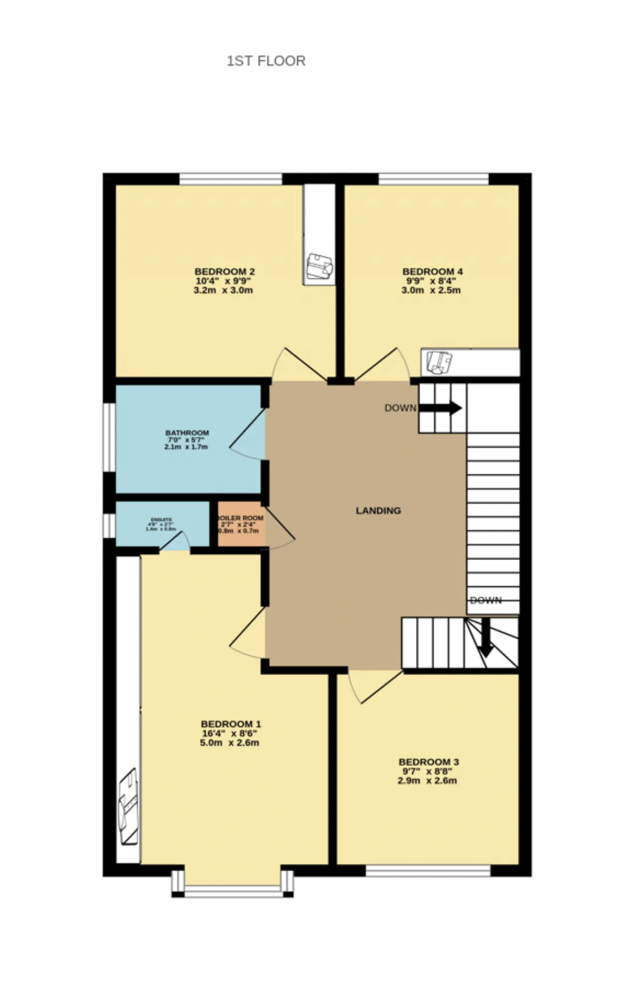 Bedroom 1 2.58m x 4.99m Double room with built in wardrobes, floor to ceiling bay window and ensuite.