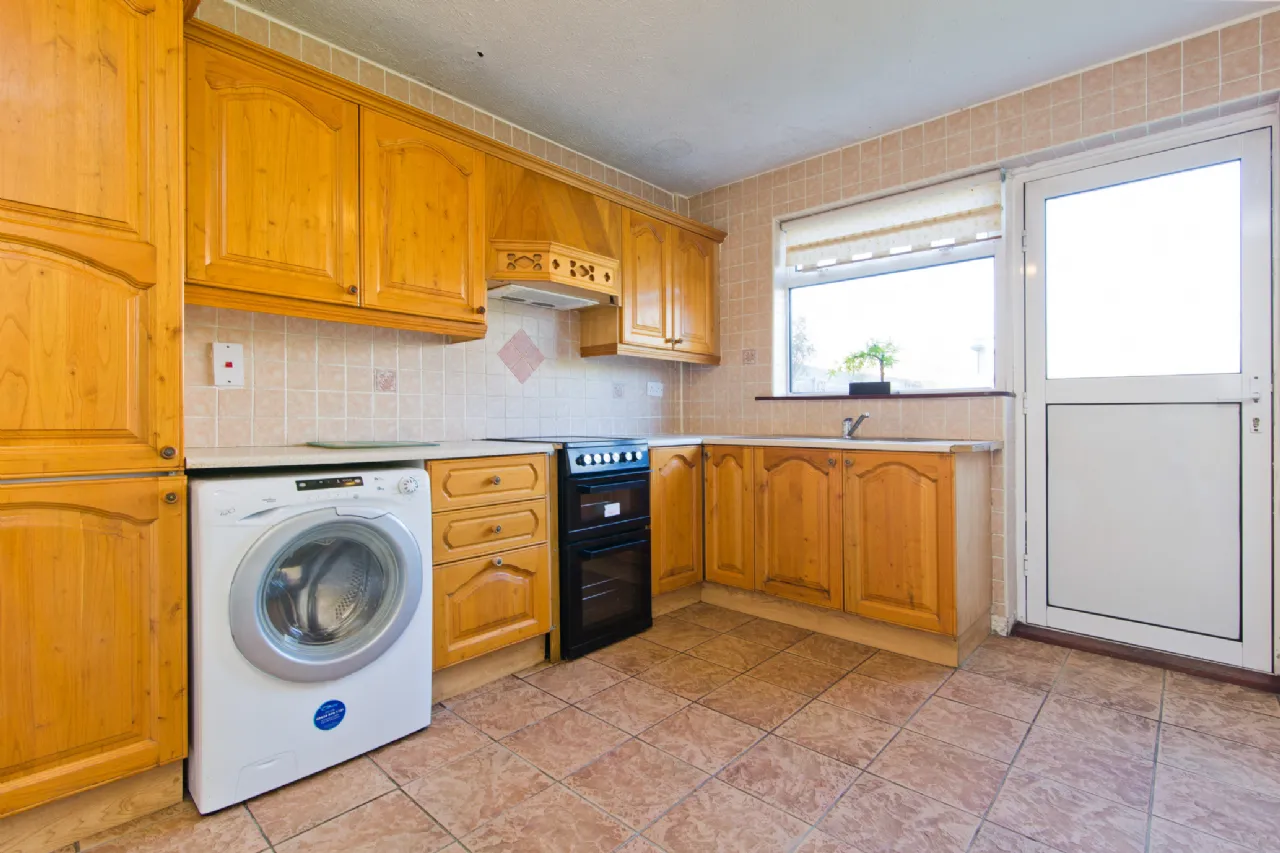 Kitchen Fully fitted with both floor and eye-level units with tiled flooring and access to rear.
