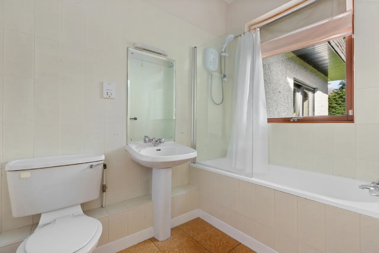 Ensuite This ensuite comprises a WC, WHB with fitted mirror and light, a bath with shower attachment, and a Velux skylight.