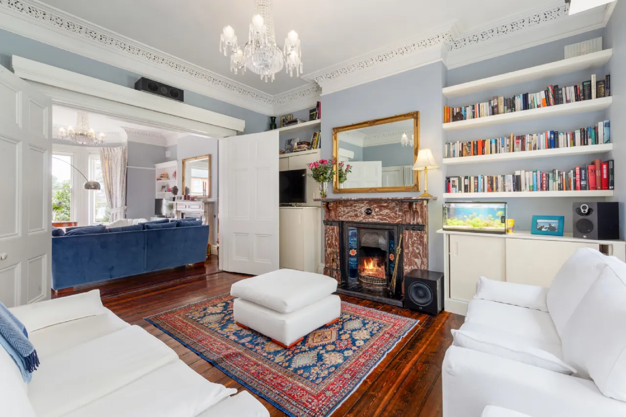 Bedroom 1 4.51m x 4.93m Large double room with ceiling coving, original wooden floors and large sash window overlooking rear garden. Original, painted, cast iron fireplace flanked by fitted wardrobes providing excellent storage.