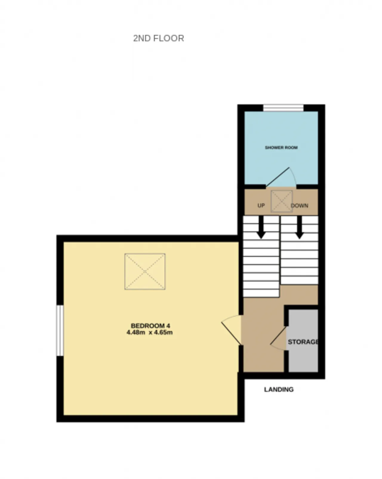 Bedroom 4 4.48m x 4.65m Original double room at the top of the house with sash window, original wooden floors, skylight and eaves storage.