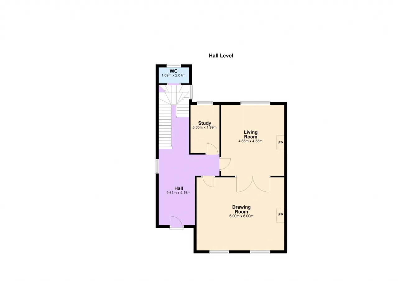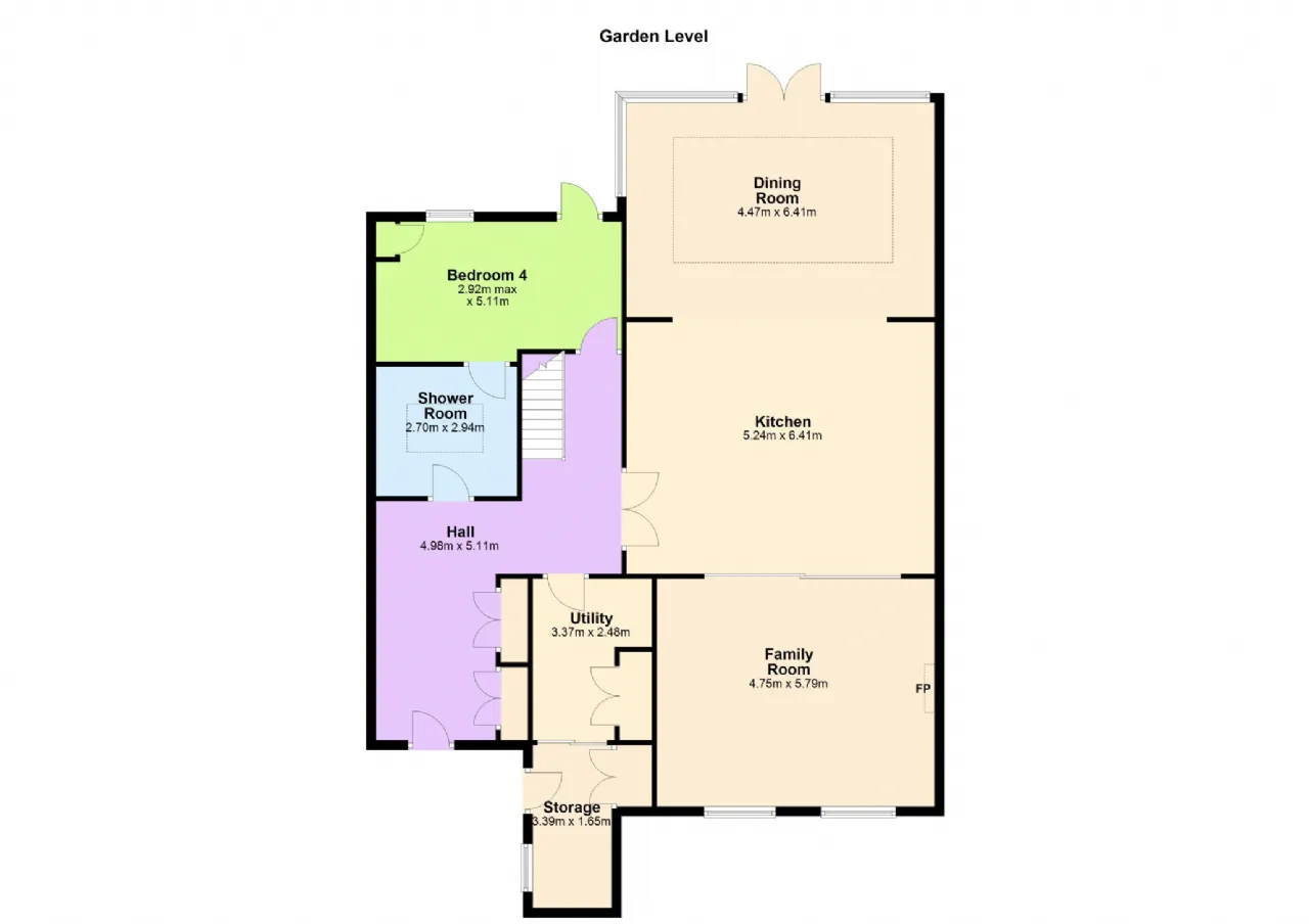 Inner Hallway Stairs to hall level and return, understairs storage, double doors through to kitchen