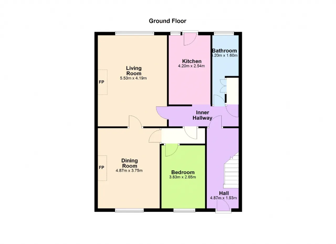Dining Room: 4.87m x 3.75m Feature marble fireplace, window to front, ceiling cornicing and centre rose.