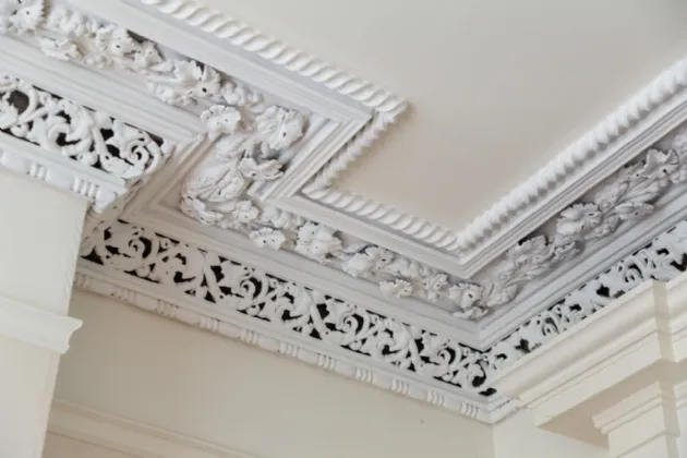 Drawing Room Gracious reception room with bay window with working shutters, handsome marble mantlepiece with cast iron inset and open fire, intricate cornicing, picture rail, beautiful feature ceiling rose. 3.59m ceiling height. Folding double doors to: