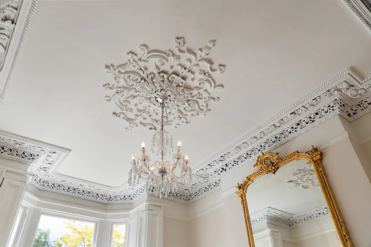 Entrance Hallway Welcoming hallway with arched picture window with working shutters, intricate layered cornicing, internal fan light